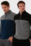 Buratti Regular Fit Anti-Pilling Tüylenme Yapmayan Dik Yaka Şardonlu 2'li Paket Erkek Polar 5906016S2 GRİ-SİYAH
