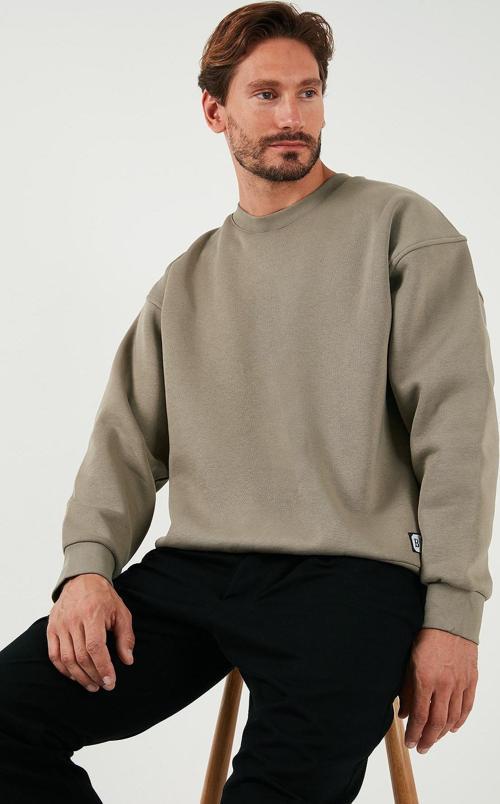 Buratti Regular Fit Bisiklet Yaka Pamuklu İçi Tüylü Yumuşak Şardonlu Erkek Sweat 5905255 Vizon Yeşili