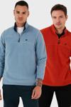 Buratti Slim Fit Anti-Pilling Tüylenme Yapmayan Bato Yaka Şardonlu 2'li Paket Erkek Polar 5906001S2 Açık Mavi-Orange