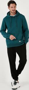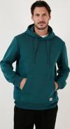 Buratti Slim Fit Kapüşonlu Kanguru Cepli İçi Tüylü Yumuşak Şardonlu Erkek Sweat 5905281 PETROL