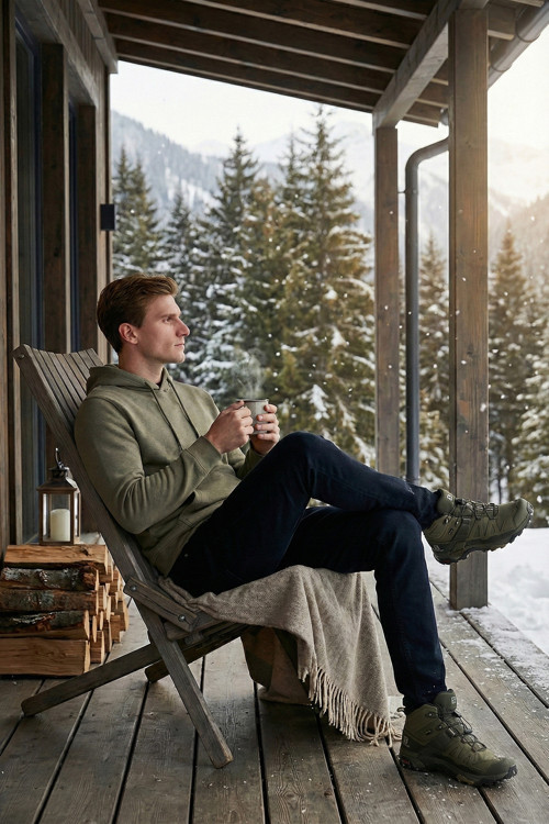 Buratti Slim Fit Kapüşonlu Kanguru Cepli İçi Tüylü Yumuşak Şardonlu Erkek Sweat 5905281 Vizon Yeşili