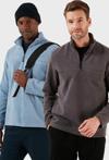 Buratti Slim Fit Yarım Fermuarlı Yumuşak Dokulu Şardonlu 2'li Paket Erkek Polar 59060011S2 Füme-Koyu Mavi