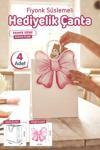 Burgu Saplı Karton Kurdeleli Çanta 4 adet Hediye Paketi Çanta Poşet (Pembe)doğum günü, düğün, bebek partisi-T1541