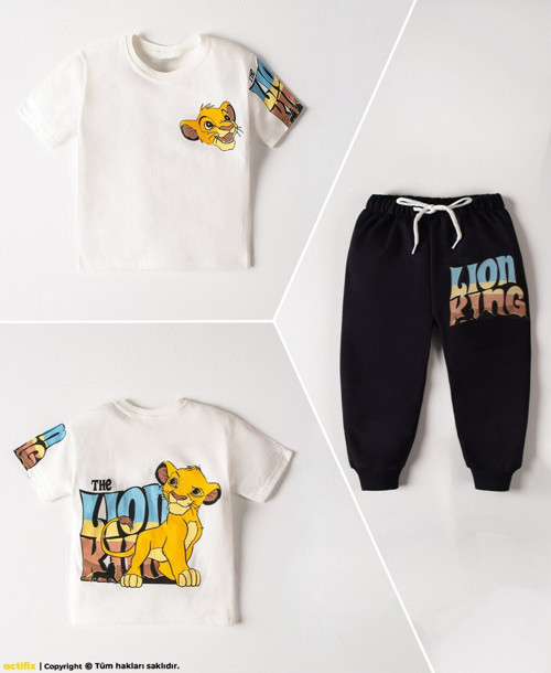 Ekru Pamuklu Kalın İçi Tüylü Yumuşak Dokulu Standart Fit Baskılı Erkek Çocuk Eşofman Takım - 11233 - Image 1