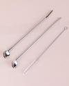 Büro Ev İçecek Keyfi için 2PARÇA Kaşıklı Paslanmaz Metal Pipet Fırça Seti