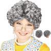 ForWhat Büro Ev Ofis Etkinlik Gösteri İhtiyar Kadın Kostüm Peruğu için Gri Kıvırcık Astarlı Yaşlı Saç Peruk