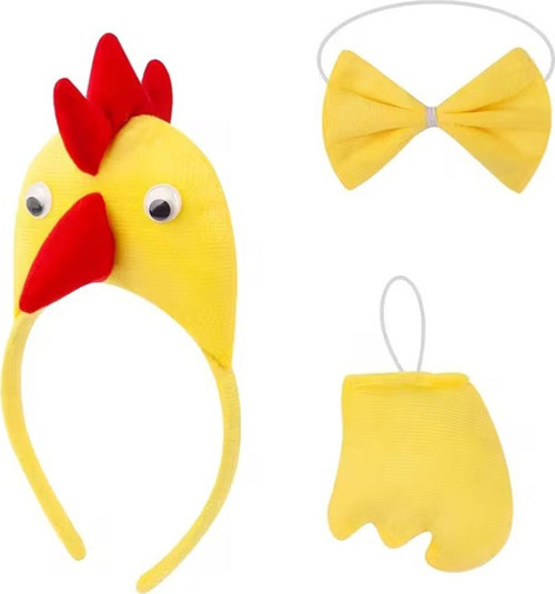 Canlı sarı renkleri ve eğlenceli horoz/tavuk figürü sayesinde çocukların üzerinde dikkat çekici ve neşeli bir görünüm sunar. Sahne gösterileri, tiyatro oyunları, temsiller ve fotoğraf çekimleri için ideal bir kostüm aksesuar setidir.