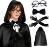 Cadı ve Büyücü Kostüm Seti 120 cm Siyah Kapüşonlu + Gözlük + Papyon + Uzun Eldiven