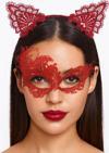 Büro Ev Ofis Gösteri Kostümü için Bohem Kırmızı Dantel Maske Taç Seti