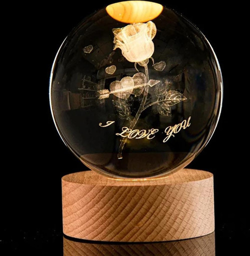 Büro Ev Ofis Hediyesi için 6CM I Love You Stil Ahşap Standlı Işıklı Cam Küre