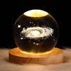 Büro Ev Ofis Hediyesi için 6CM Samanyolu Model Ahşap Standlı Işıklı Cam Küre