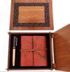 Büro Ev Ofis Hediyesi için Ahşap Kutulu Kahve Deri Defter Bakır Kalem Seti