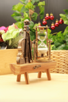 Dekoratif keman tasarımlı kum saati, estetik ve şık görünümüyle yaşam alanlarınıza nostaljik bir hava katar. Ahşap detayları ve keman figürüyle birleşen kum saati tasarımı, hem dekoratif bir obje hem de işlevsel bir zaman ölçer olarak kullanılabilir.