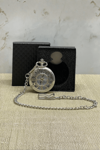 Özel kutulu rakamlı gümüş köstekli saat, nostaljik tasarımı ve klasik detaylarıyla dikkat çeker.