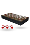 İç yüzeyindeki özel desenler oyunun görselliğini artırırken taşlarıyla birlikte eksiksiz bir oyun seti sunar.