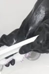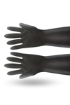 Siyah renkli endüstriyel eldiven, üç katmanlı organik lateks malzemeden üretilmiştir ve organik pamuk pudralı astarı sayesinde ellerinizi terletmeden konforlu bir kullanım sunar.