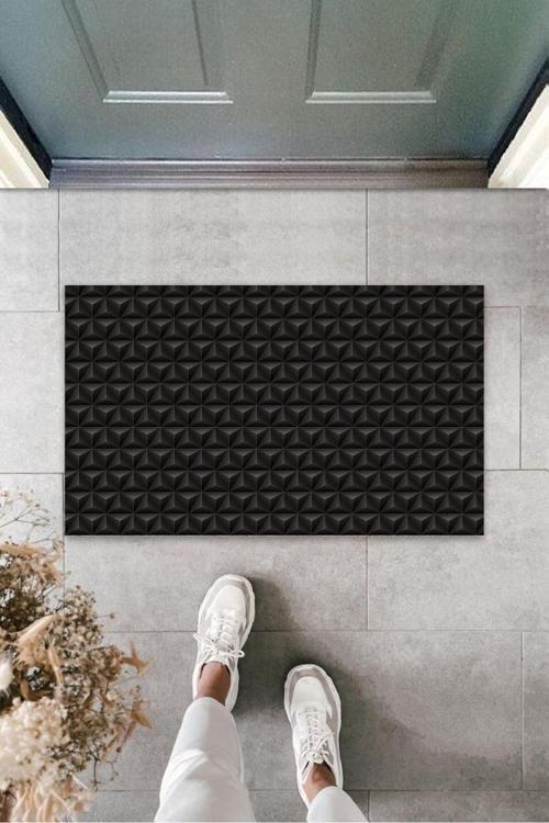 Büro Ev Ofis için 70x45CM Siyah D Üçgen Motif Dış Kapı Önü Paspası