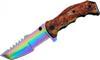 Büro Ev Ofis Kamp Keyfi için 23CM Tırtıklı Gökkuşağı Sap Yarı Otomatik Çakı