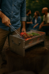Katlanabilir mangal, pratik tasarımı sayesinde kolayca taşınabilir ve kısa sürede kurulabilir yapısıyla dikkat çeker.