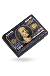 Altın dolar tasarımlı siyah iskambil oyun kartı, lüks görünümü ve özel tasarımıyla oyun keyfinizi daha şık hale getirir.