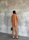KAZAX markasının bürümcük kumaş yakımıyla tasarlanan kadın giyim takımı, şıklık ve rahatlığı bir arada sunuyor.