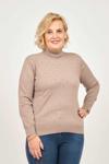 Desen Triko Kadın Sıfır Yaka Omzu Saç Örgülü Yün Kazak 22096 V. Bej - Image 1