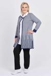 Detay: Uzun Kollu, Önü Açık, Geometrik Çizgi Desenli, Etek Uçları Nakış Detaylı Hırka;