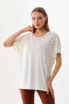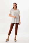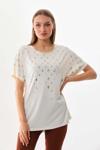 Detay: Kısa kol, ön kısmı desenli bluz;
