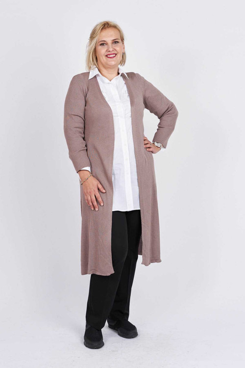 Büşra Triko Kadın Önü Açık Yırtmaç Detaylı Uzun Hırka 3997259 Vizon