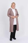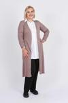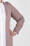 Detay: Uzun Kollu, Yırtmaç Detaylı, Önü Açık Uzun Triko Hırka;