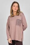 Detay: Bisiklet Yaka, Uzun Kollu, Cebi Taş Detaylı Yırtmaçlı Kazak;