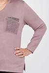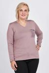 Detay: V Yaka, Taşlı Cep Detaylı, Uzun Kollu, Yırtmaçlı Kazak;