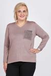 Triko Kadın Taşlı Cep Detaylı Kazak 3998217 Vizon