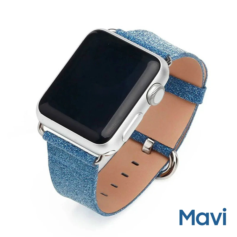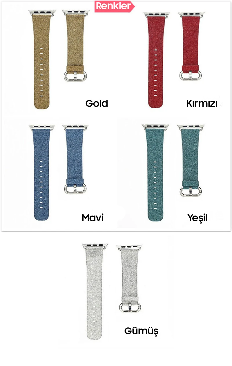 Ally Apple Watch 7 45mm 6-5-4 44mm Kordon Kayış Deri İnce Sim İşlemeli 3-2-1 42mm