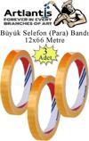 Artlantis Büyük Bant Kesme Makinesi Kırmızı ve 3 Adet 12x66 Metre Bant Masa Üstü Bant Makinesi Bant Kesici