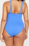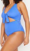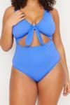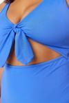 Büyük Beden Atma Kap Toparlayıcı Askılı Derin V Yaka Mavi Derin Cut-Out Bağlamalı Mayo
