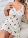 Pratikoba Büyük Beden Ayıcık Desenli Pamuklu İnce Askılı Mini Gecelik
