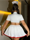 Vücuda oturan mini tasarımı ve transparan bolero detayıyla feminenliğinizi ön plana çıkarırken, büyük beden kesimiyle özgürce hareket etmenizi sağlar. Hemşire temalı aksesuarlarıyla gecenize eğlenceli ve etkileyici bir hava katar.
