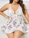 Büyük Beden Beyaz Üstüne Çiçek Desenli Dantel İşlemeli İnce Askılı Gecelik