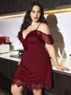 ? Büyük Beden Bordo Dantel İşlemeli İnce Askılı Gecelik