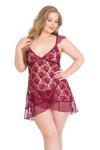 Büyük Beden Bordo Kısa Tül Gecelik 3035