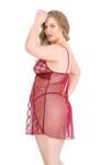 Büyük Beden Bordo Kısa Tül Gecelik 3022