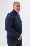 BÜYÜK BEDEN ERKEK LACIVERT BALIKÇI SAÇ ÖRGÜLÜ YÜN KAZAK TRIST-2119