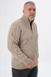 Trist Star Büyük Beden Erkek Vizon Cepli Fermuarlı Yürütme Saç Örgülü Yün Hırka TRIST-2120