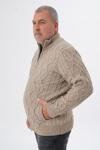 Büyük Beden Erkek Vizon Cepli Fermuarlı Yürütme Saç Örgülü Yün Hırka TRIST-2120