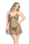 Büyük Beden Haki Kısa Tül Gecelik 3023