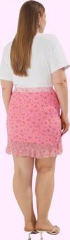 Ersefa Büyük Beden Kadın Çiçekli Mini Etek Mesh Kumaş Günlük Stil Hafta Sonu Yaz Aylarının Vazgeçilmezi