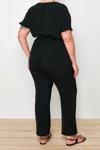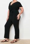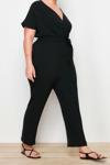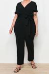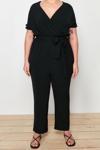 Büyük Beden Kadın Moda Düşük Kol Regular Kruvaze Düz Desen Uzun Kemerli Tulum