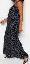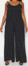 Ersefa Büyük Beden Kadın Moda Standart Kol Regular V Yaka Puantiyeli Desen Uzun Çiçek Desenli Dokuma Tulum