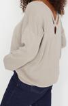 Hem kazak hem de hırka olarak kullanılabilen bu çok yönlü tasarım, V yakası ve düğmeli ön kısmı ile zarif bir görünüm sunar.